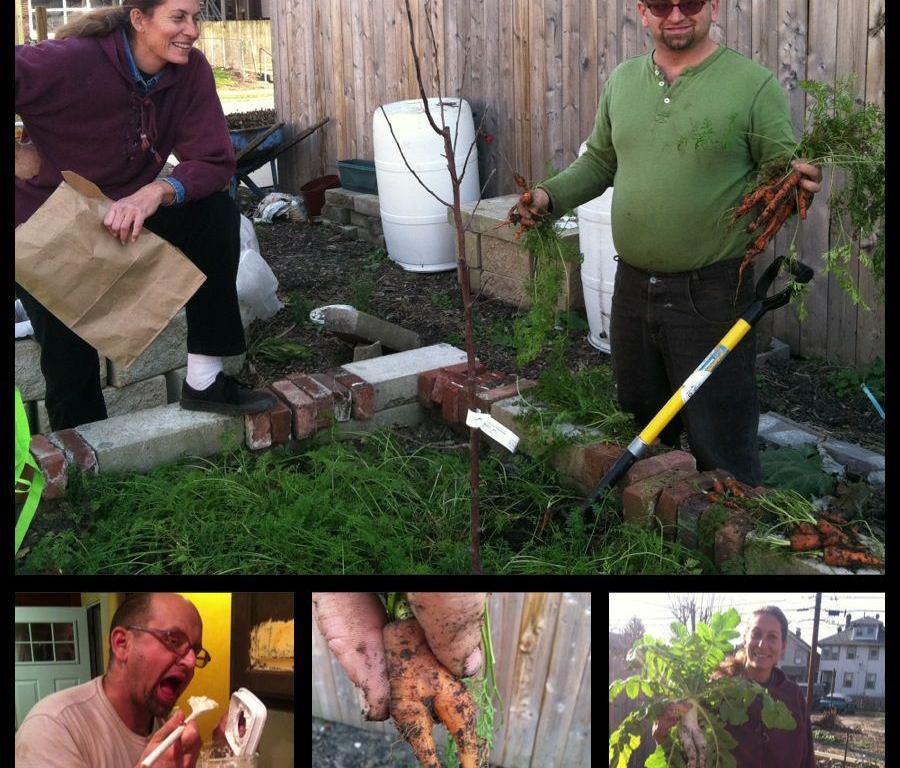 Woody and Darlene Bring in 4th Street Farm’s December Harvest of Carrots, Daikon Radishes, Horseradish, Spinach, Lettuce, Kohlrabi, Raspberries, Maypops, & more…