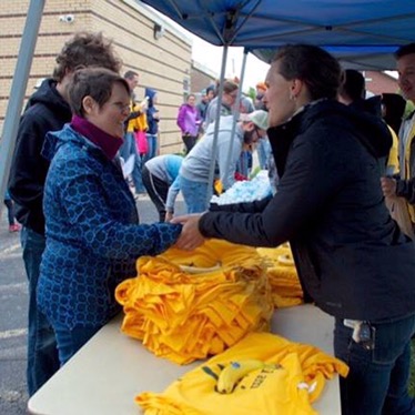 Ashley greets Shelly at Volunteer Check-in