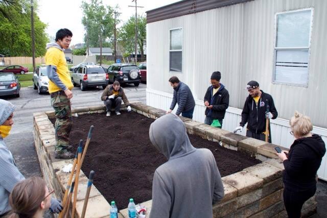 Volunteers maintain raised beds at Godman Guild: