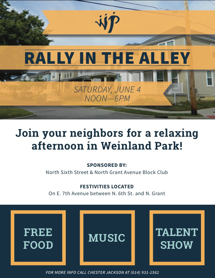 Coordinated by the 6th Street & North Grant Block Clubs – Weinland Park Civic Association with support from OSU Extension. Call Chester Jackson at 614-931-1562 for more information or to get involved.